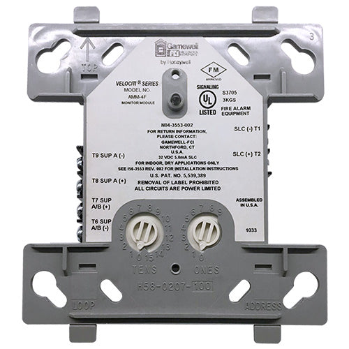 The Gamewell-FCI Velociti® Series, addressable monitor module (AMM-4F) features a single Style D, Class A initiating device circuit. Configured as a Style B, as well as Class B initiating circuit with end-of-line resistor. Also, this module provides an address for any device or group of devices connected to this circuit.
