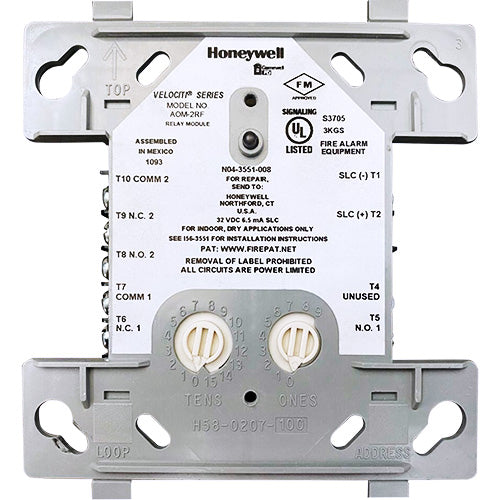 The AOM-2RF is an addressable output relay control module. The AOM-2RF allows a Gamewell-FCI addressable fire alarm control panel to switch discrete relay contacts via software code commands. The AOM-2RF is compatible with the E3 Series, S3 Series, and 7100 Series Fire Alarm Control Panels